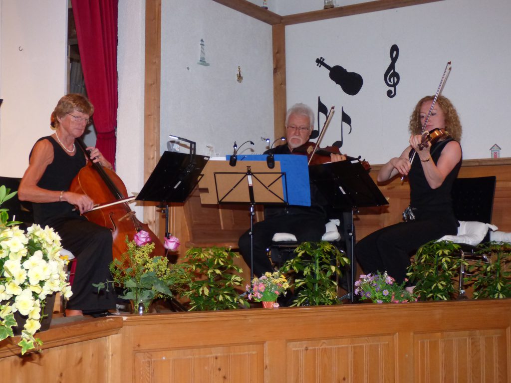 Das Streichtrio Cordial mit Silvia Meier an der Violine, Kurt Wehle an der Viola und Elisabeth Penzel am Cello spielte „Morning Prayer“. „lch ohne dich“ vom Chor eröffnete den zweiten Teil des Musikabends zum Thema „Wir sind wieder zusammen“. Dazu sang der Chor „Schläft ein Lied in allen Dingen“, „Begegnungsjodler“, und „Mit Lebenslust und Freude“. Das Streichtrio Cordial spielte zwischendurch „Cavatina“, „So this is love“ und „ln dir ist Freude“. Nach der Pause ging es um das „Miteinander leben“. Dazu brachte der Chor „Guada Freind“, „Rote Lippen soll man küssen“, „Zünd a Liacht für di o“ und „Übern See“ gekonnt dar.