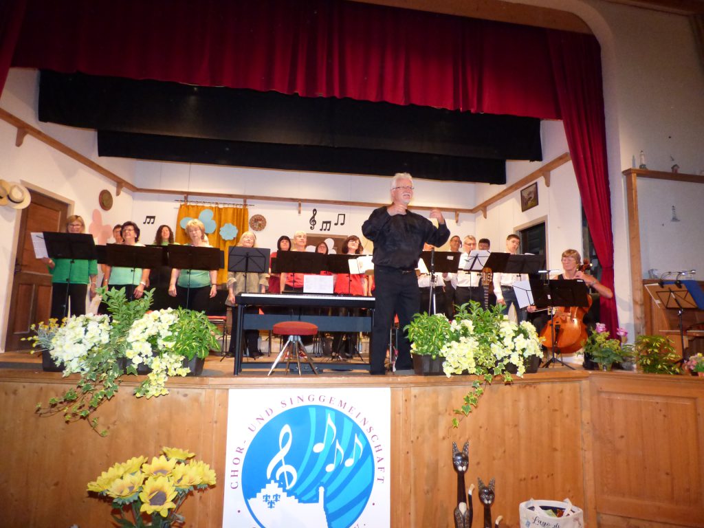 Der Saal war bis zum letzten Platz gefüllt. Der Chor und Chorleiter Kurt Wehle hatten ein Riesenprogramm vorbereitet. In 29 verschiedenen Chorsätzen wurden die Themen „Gratulationslieder“, „Chor im Laufe der Zeit“, „Vom Wert des Singens und Musizierens“, „Lieder zu Gefühlen“ und „Zukunft und Abschluss“ dargeboten. Der Chor präsentierte sich nicht nur in der normalen Aufstellung des gemischten Chores, sondern der Männerchor, der kleine Chor, der Frauenchor und ein Soloquartett sorgten für schöne klangliche Abwechslungen. Das Echo des Publikums war überwältigend. Nach über zwei Stunden Konzert (mit einer etwa halbstündigen Pause) wollte man noch Zugabe um Zugabe. Die Leistung des Chors war deswegen beeindruckend, weil er von Anfang bis zum Schluss eine unglaubliche Präsenz und ein großes Engagement mit dem Vortragen von sehr ansprechenden Interpretationen zeigte. Bereichernd waren auch neben der Begrüßung bzw. den Grußworten der Vorsitzenden Evi Forster und des Bürgermeisters Matthäus Mandl die Ehrungen, am Schluss ein großes Dankeschön an einzelne Mitglieder mit Blumen/Geschenken und ein sehr lustiger Beitrag von Evi Forster zum Thema „Rentner am Computer“, das mit großem schauspielerischen Können vorgetragen wurde. Wenn die Musik „Sprache des Herzens“ ist, so gelang es dem Chor und seinem Chorleiter mit Unterstützung des hervorragenden Pianisten Andreas Zellhuber, die Herzen so zu erreichen, dass viele danach von einem der schönsten Konzerte überhaupt sprachen, die sie je vom Chor gehört hätten. Chorleiter Kurt Wehle, der das Programm gestaltete und alle Sätze nicht nur einstudiert hatte, sondern auch selbst viele – mit großartigen Texten seiner Frau Birgit versehen – komponierte bzw. arrangierte, verzichtete bewusst auf Präsentationen während der Veranstaltung. Kostenlos bekam das Publikum eine 51-seitige Festschrift, in der es zwischendurch, passend zum Programm, zusätzliche Informationen lesen konnte. Diese Festschrift wurde von Chormitgliedern mit vielen Bildern und Recherchen sehr ansprechend gestaltet. ——>Hörbeispiele